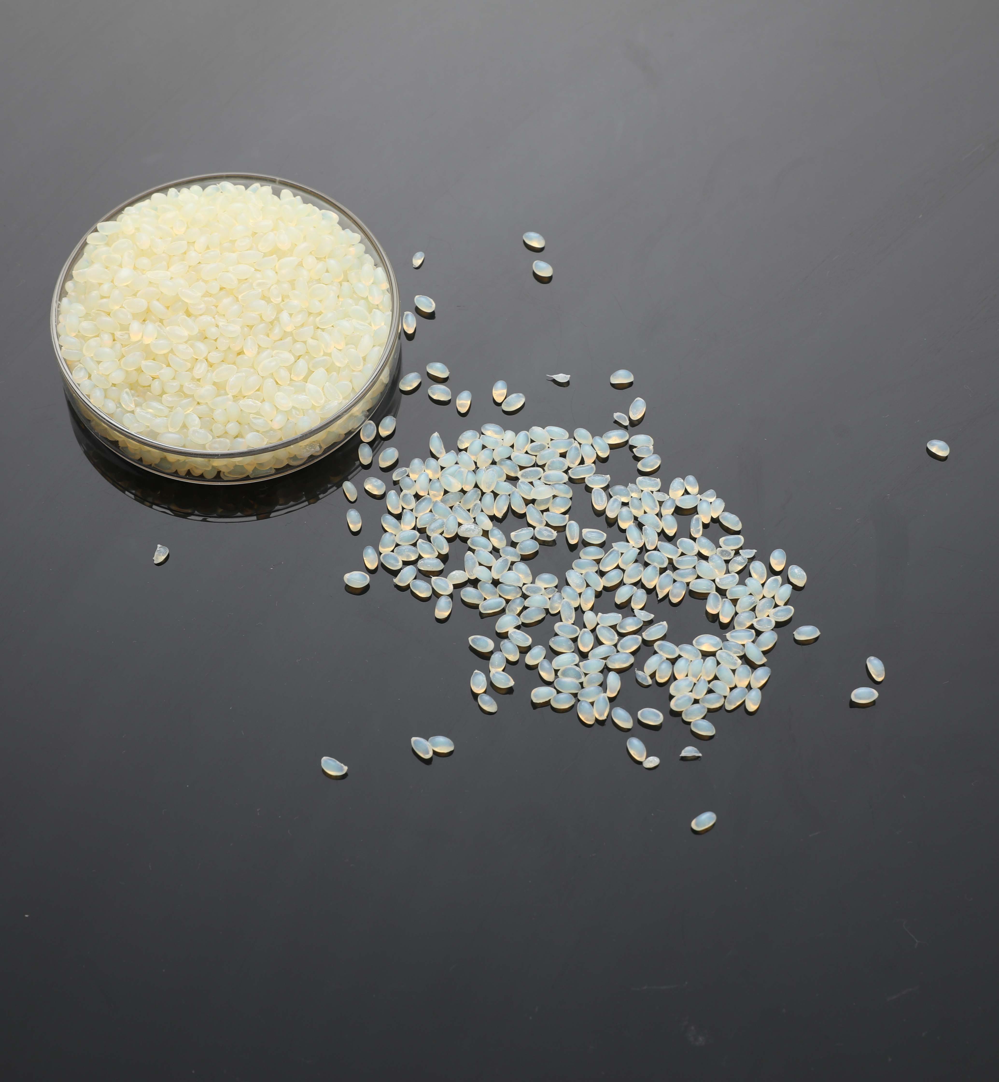 此款黃色片狀顆粒適用于油墨和表面鋪膜的紙箱復(fù)合,粘合強度好,耐溫效果佳