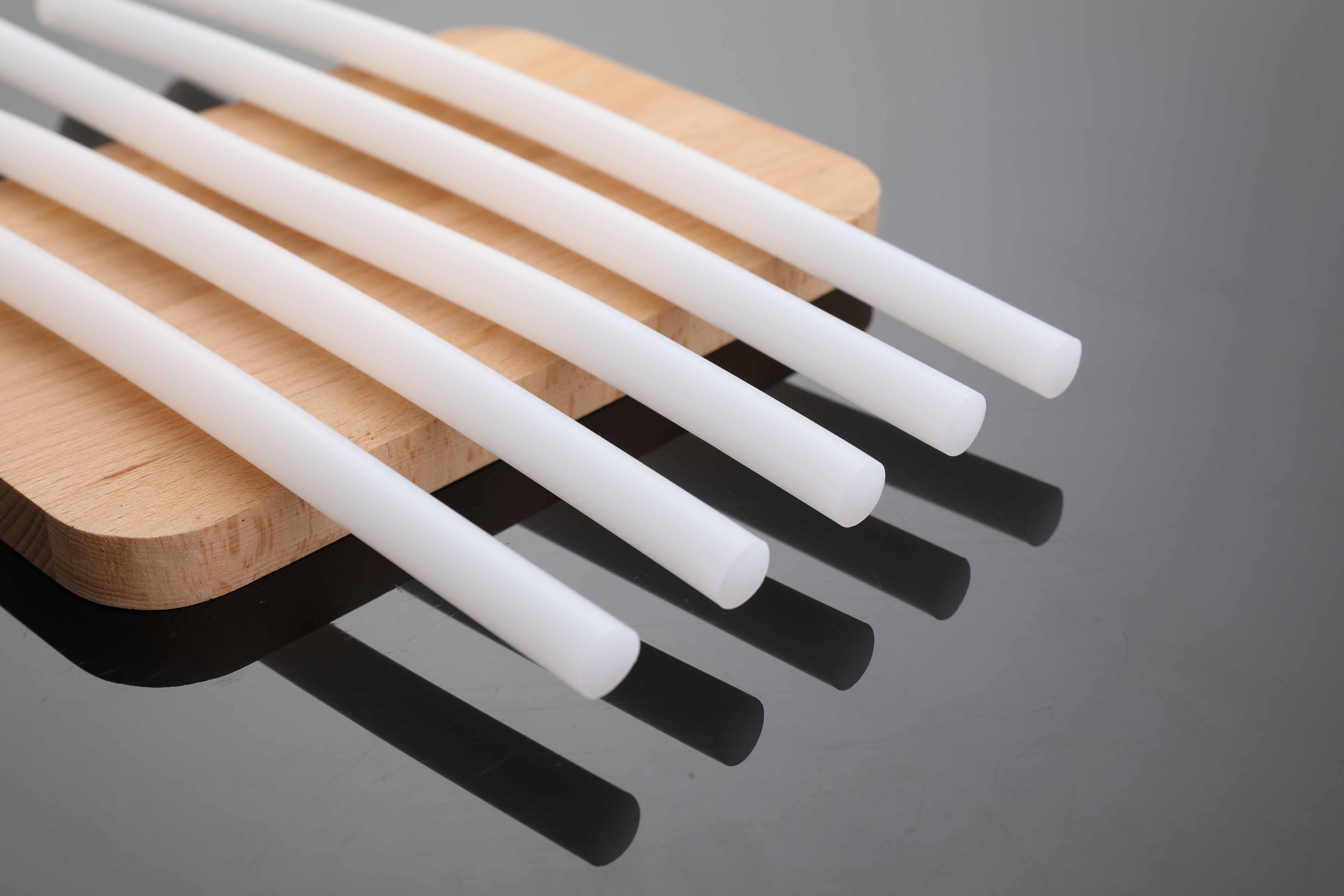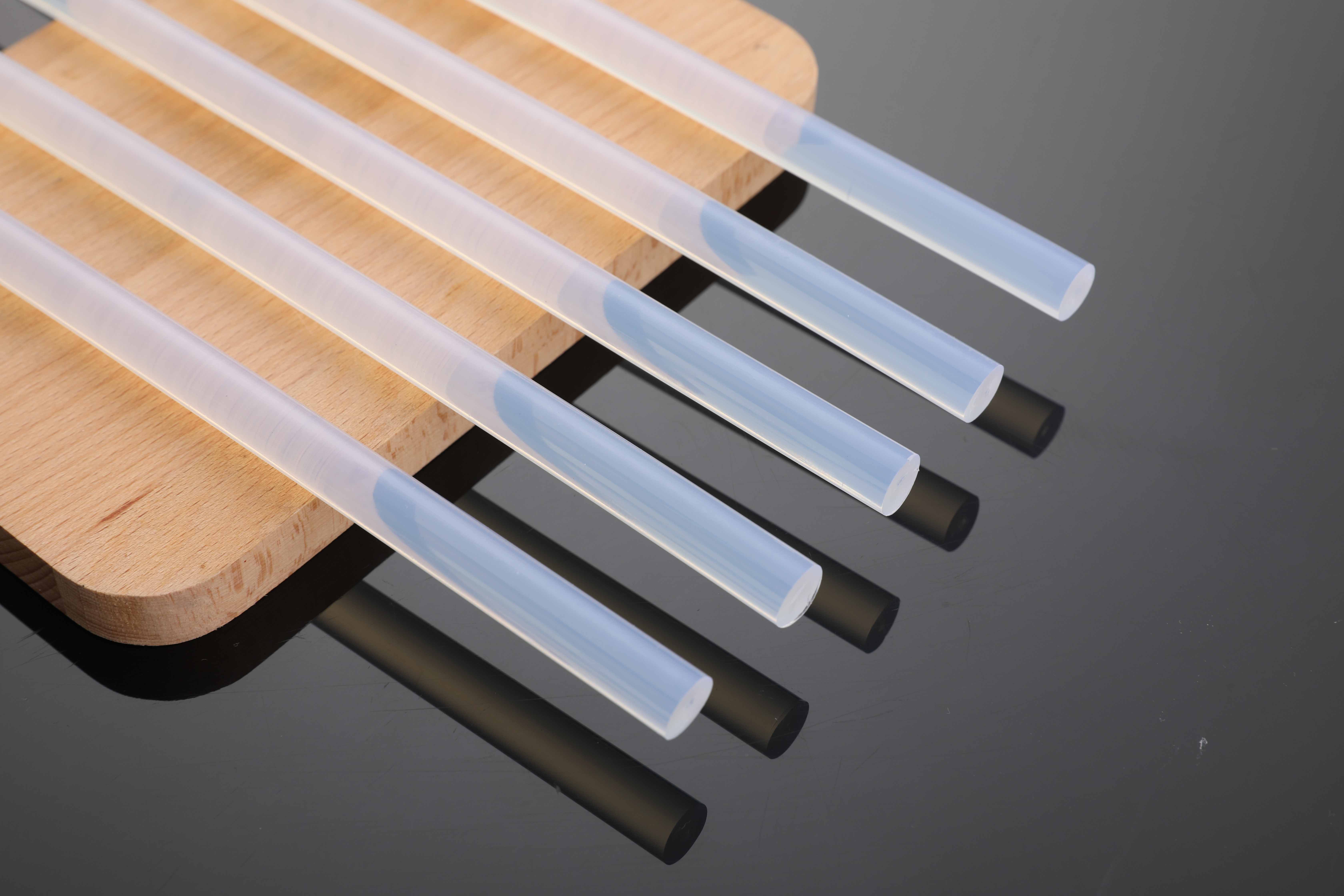 此款白色透明膠棒產(chǎn)品適用于工藝品,塑料,無紡布,紙箱等粘結(jié),具有環(huán)保、粘度高、快速固化、操作流暢、無煙無味,不拉絲等特點。